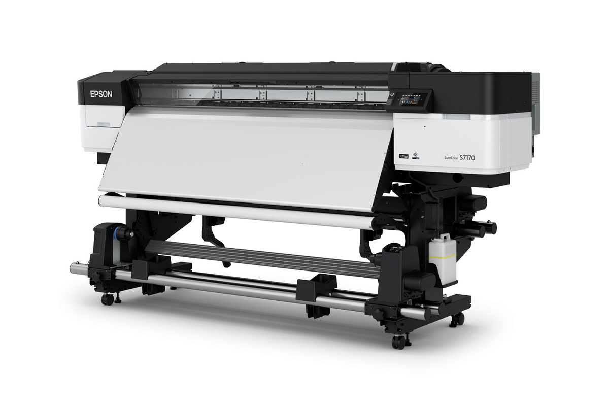 Grow your business with the SureColor® S7170—a 64" signage printer that delivers professional performance at an incredible value. Utilizing UltraChrome® GS3 4-color solvent inks and Epson Precision Dot technology, this printer delivers renowned detail and color performance, making it ideal for indoor and outdoor signs, banners, stickers, vehicle wraps and more. Built on the trusted platform of the previous generation, the SureColor S7170's precise media handling system is paired with a new, wider 1.33" PrecisionCore® Micro TFP® printhead enabling faster print speeds1. Nozzle Verification Technology helps to ensure stable operation, while a temperature sensor placed closer to the nozzle plate improves color consistency. And a newly developed Ink Supply System replaces bulky cartridges with high-volume, 800 mL ink packs2, to help reduce plastic waste and prevent frequent ink replacement. The SureColor S7170 supports a wide spectrum of media including vinyl, PVC, mesh, paper, and canvas to meet your customer needs—all with one printer—all in-house.