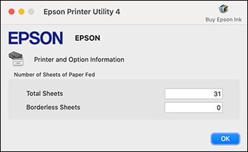 You can check the number of sheets of paper that have fed through the product by checking the sheet counter.- In the Apple menu or the Dock, select System Preferences or System Settings. Select Print & Fax, Print & Scan, or Printers & Scanners, select your product, and select Options & Supplies. Select Utility and select Open Printer Utility.
