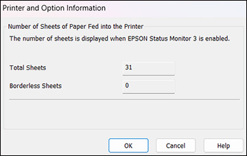 Note: The number of sheets is displayed only when Epson Status Monitor 3 is enabled.