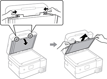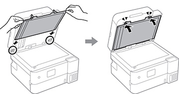 Do not spray glass cleaner directly on the glass and do not press the glass surface with any force. Be careful not to scratch or damage the surface of the glass. - Release both tabs and remove the document mat.