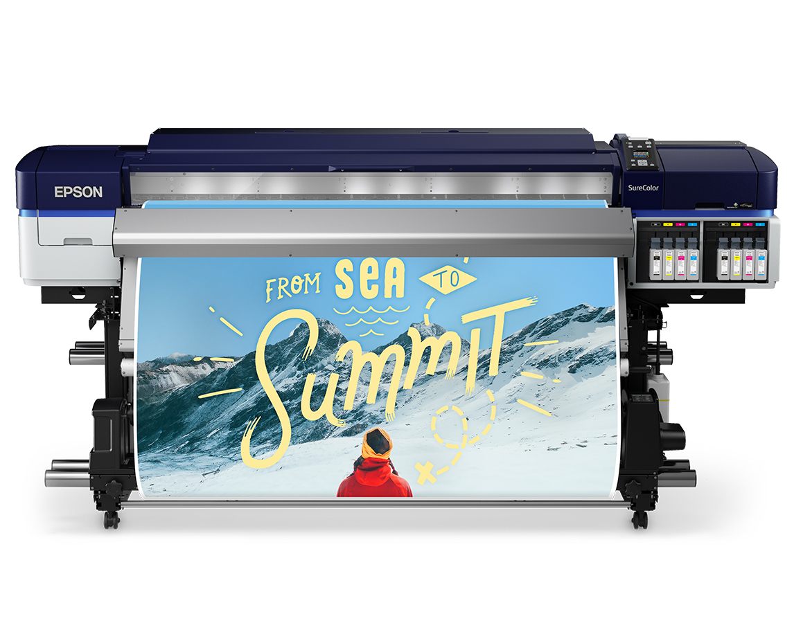 - Double-capacity, 9‑color Epson UltraChrome® GS3 solvent ink