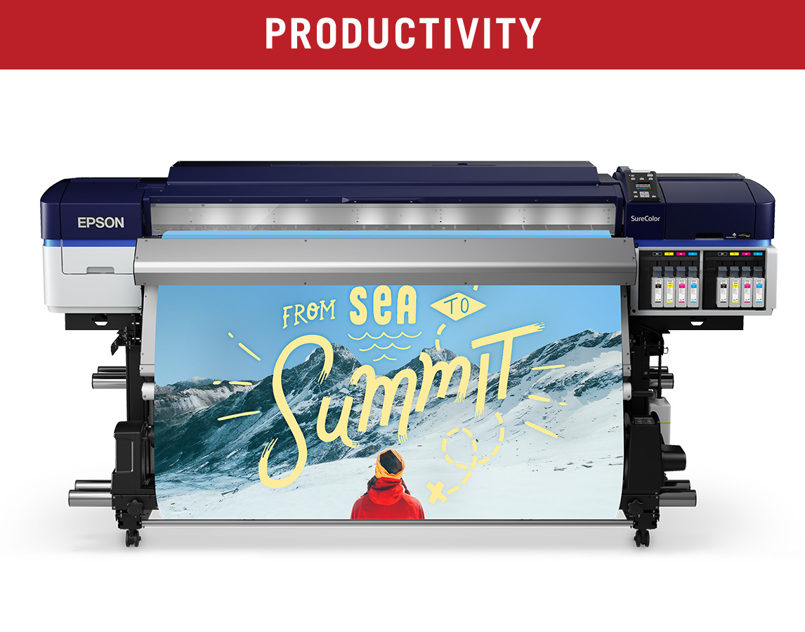 - Double-capacity, 9‑color Epson UltraChrome® GS3 solvent ink