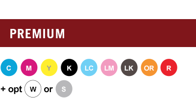 - Options for white and metallic inks provide creative flexibility to print on diverse media or create eye‑popping graphics.