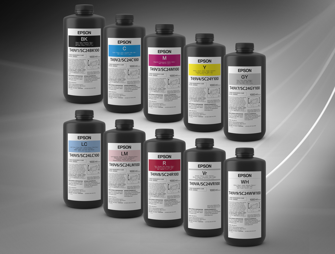 The SureColor-V7000 uses vibrant 10-color UltraChrome UV ink, including dedicated red and gray inks for signage, white ink that's impressive on transparent and dark media, and varnish ink that creates a visual and tactile experience.